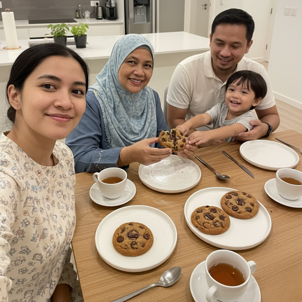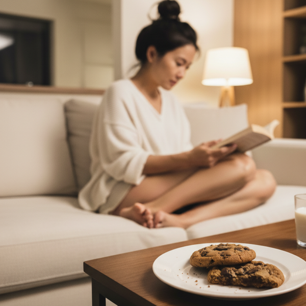 Everyone's asleep. You grab your book and pour cold milk. One cookie, eight minutes, and the time belongs to just you.