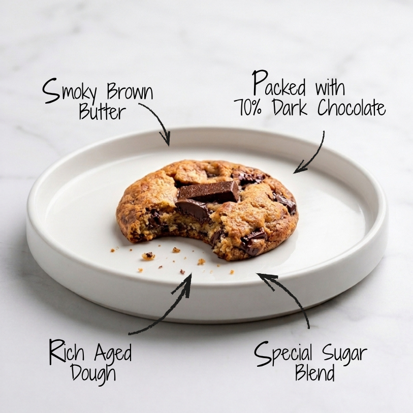 ✔️ Smoky aged dough. Brown butter. Dark chocolate chips.